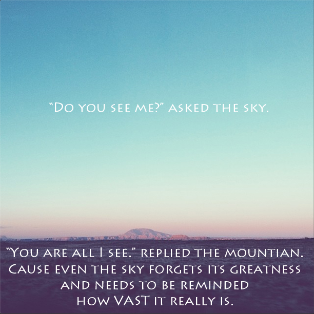 Cause even the Sky forgets its greatness and needs to be reminded how vast it really is.